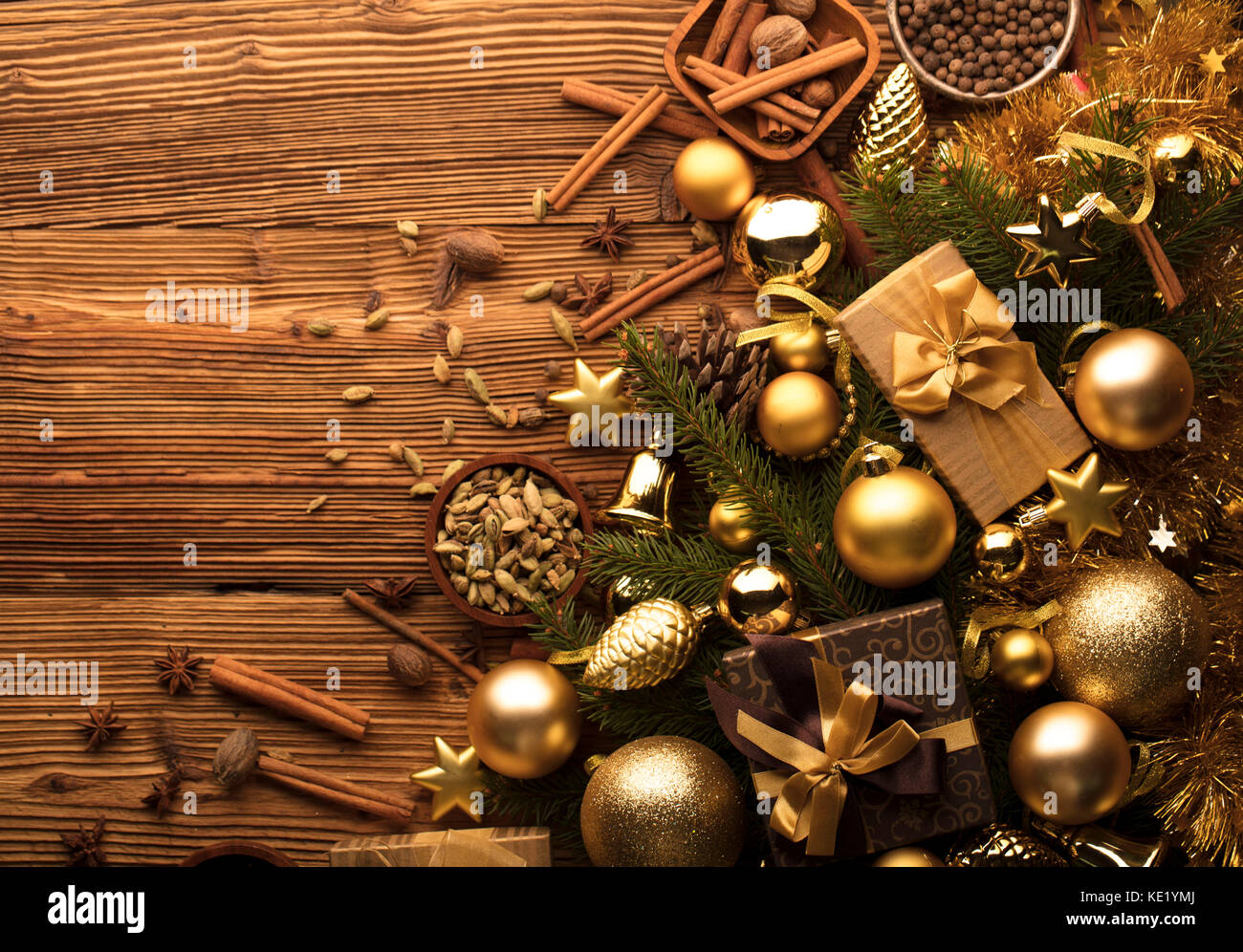 Christmas Theme Golden Christmas Decoration Stock Photo