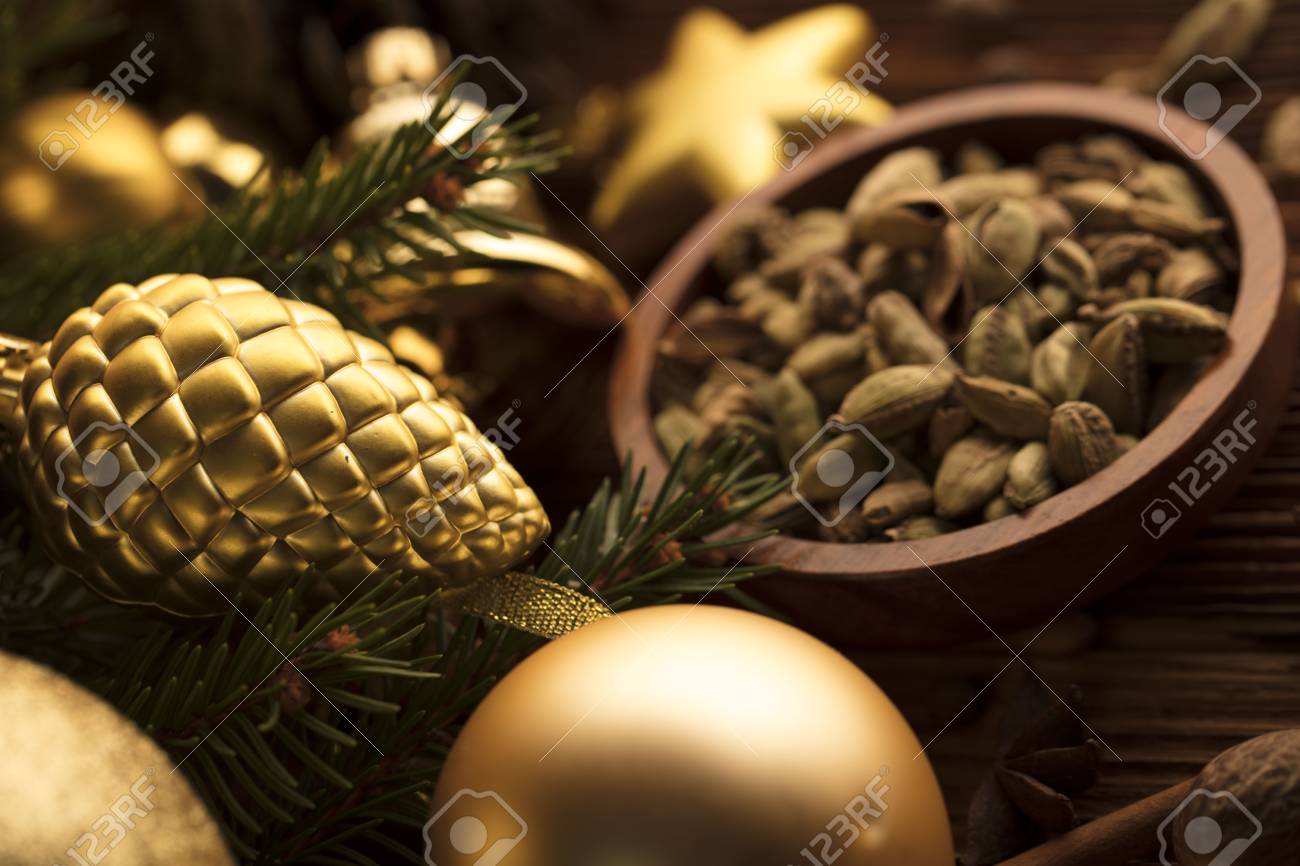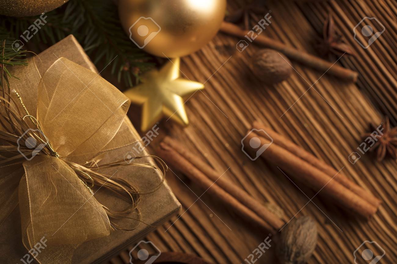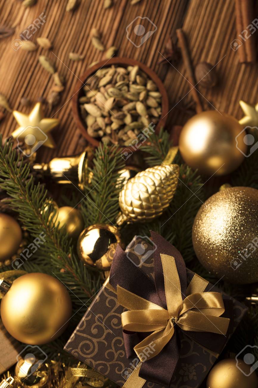Christmas Decoration In Golden And Brownish Aesthetics With