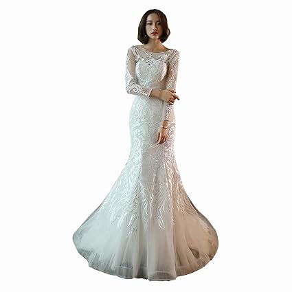 Nomsocr Women S Lace Long Sleeve Wedding Dresses Luxury Mermaid Bridal Gown Xxl White