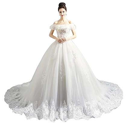 Nomsocr Women S Lace Tulle Wedding Dresses Luxury Off Shoulder Bridal Gown Xxl White