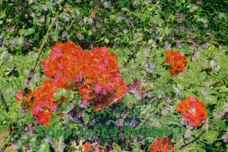 Roses And Geranium Flower Carpet Photo Card Double Exposure Small Print Fine Art Photography Nature Trend Greeting Card