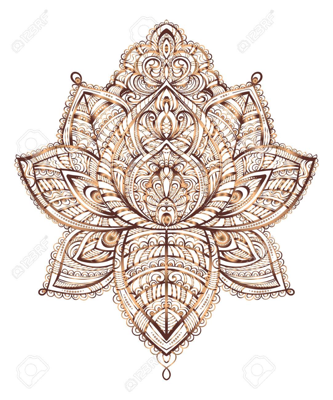 Hand Drawn Ornate Vector Ornamental Lotus Tattoo With Elements