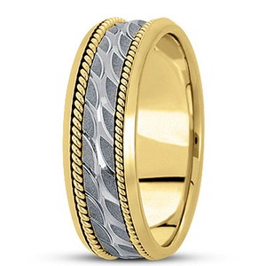 New Mens 14k Two Tone Gold Hand Carved Wave Design Wedding Band