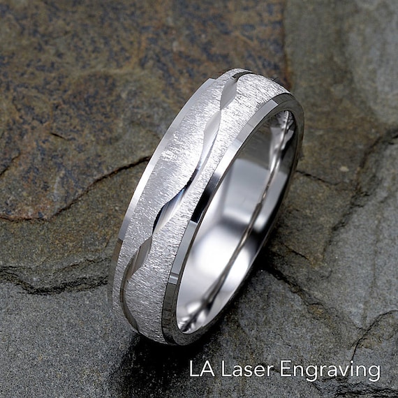 Mens Wedding Band 14k White Gold Wedding Ring Wave Design Etsy